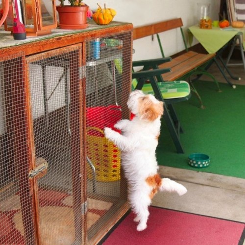 Er hat die kleinen Kürbisse, die ich extra weggestellt habe, natürlich wieder entdeckt! Mister Schlaumeier!