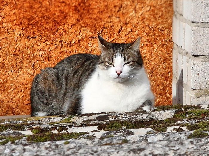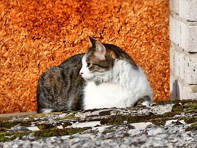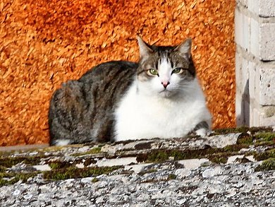 | Wenn ich die Betten mache und aus dem Schlafzimmerfenster über die Straße schaue, sitzt sie meistens da, auf dem Dach einer alten Scheune. Sie beobachtet mich genau. Aber wenn ich sie rufe, schaut sie gelangweilt weg. Dabei finde ich sie so wunderschön! Und den Winter hat sie augenscheinlich gut überstanden. Sie ist fett wie ein Otter! | |||