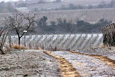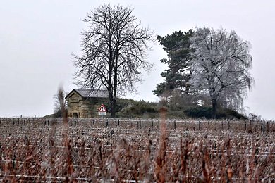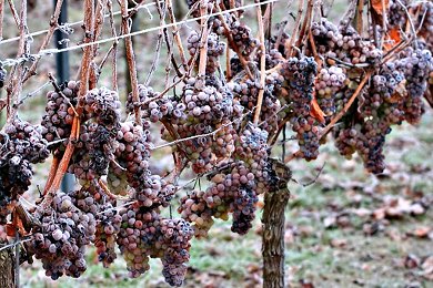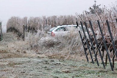 Schnee haben wir nicht. Es ist sehr kalt, die Landschaft ist wie verzaubert und... es wird Eiswein gelesen.