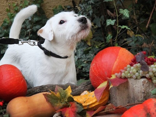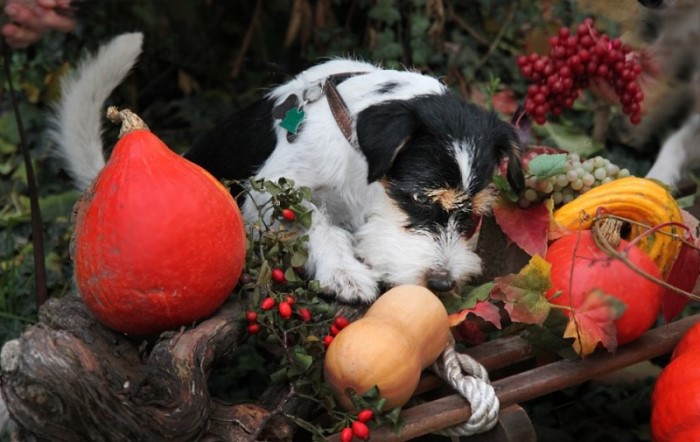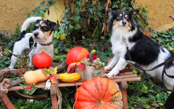 mit den teilnehmenden Hunden. Die wunderschöne Herbstdekoration hat