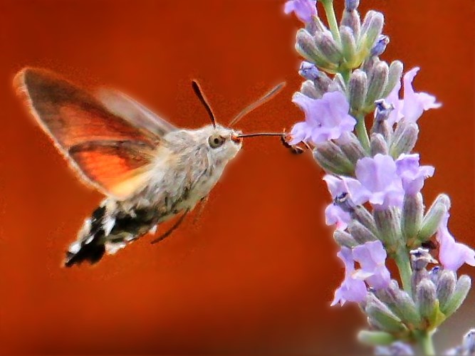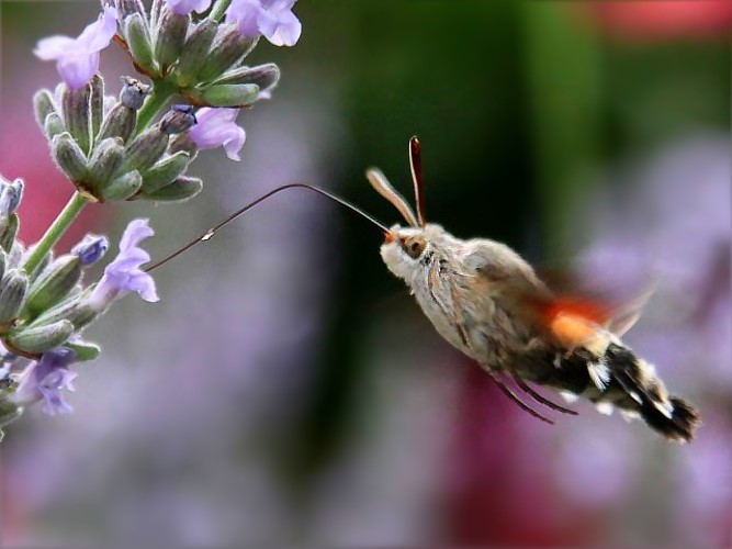 | "Das ist ein Taubenschwänzchen! Sehen aus wie ein kleiner Kolibri, sind aber Insekten aus dem Süden, kommen immer öfter bei uns vor." (Danke, Paul-Walter Klaas) |
