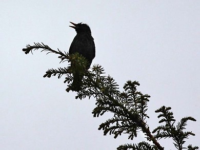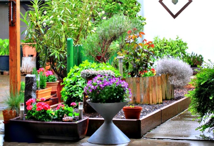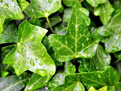 Sanfter Regen und die Pflanzen, nebst der Amsel, genießen ihn...