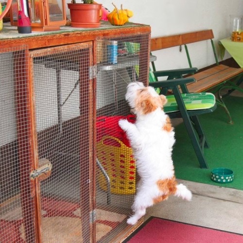 Er hat die kleinen Kürbisse, die ich extra weggestellt habe, natürlich wieder entdeckt! Mister Schlaumeier!