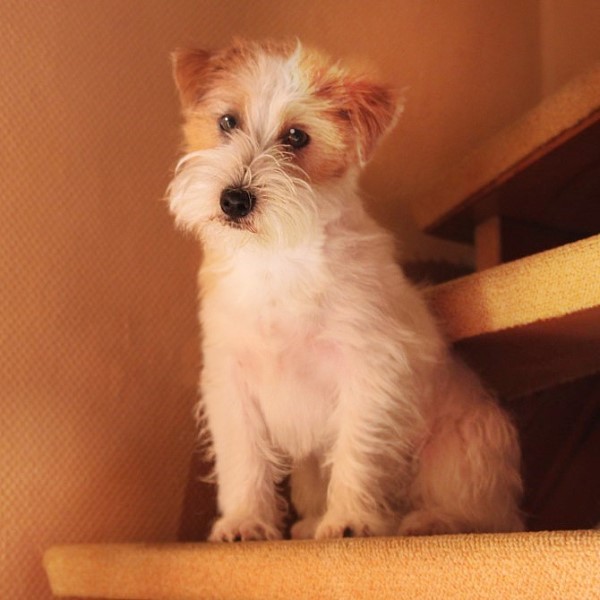 Tja, jetzt muss ich doch das Kindergitter rausholen. Die schwierige Treppe hat Mr. Miller bisher nicht beachtet. Bisher.... Vorhin komme ich ins Haus und da sitzt er auf Stufe vier und guckt mich an.