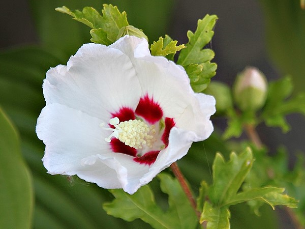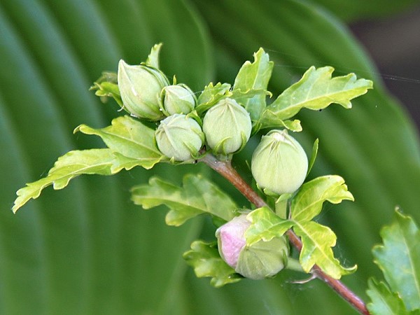 | Ich habe sie voriges Jahr aus dem Abfall bei der Tafel gefischt, eingepflanzt und über Winter einfach draußen gelassen. Und jetzt... ich bin begeistert und überrascht. Wie sie heißt, wusste ich nicht genau aber meine Facebook Freundin Janet hat mich aufgeklärt. Das ist der "Garteneibisch" (Hibiscus syriacus). |
