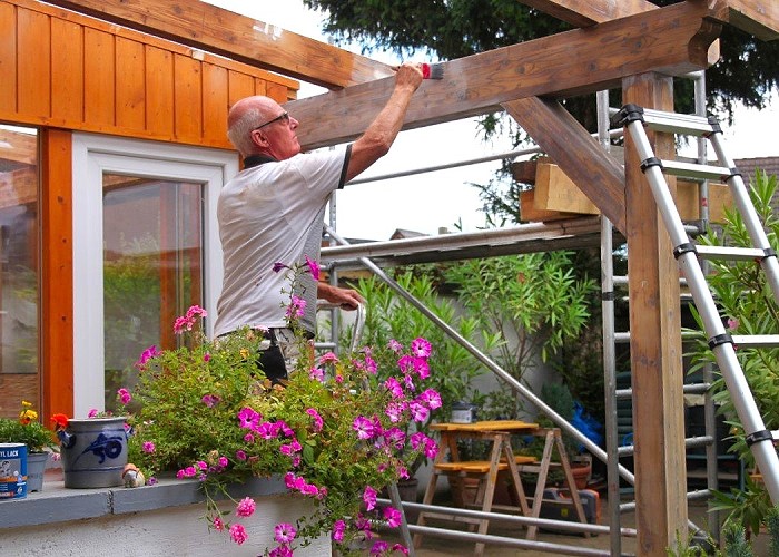 Bei uns sind die Handwerker. Herr Müller wollte so gerne helfen.