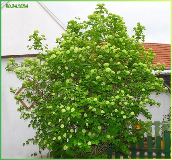 Der Schneeballstrauch: In ein paar Tagen werden die Blüten aufgehen. Jetzt warte ich nur noch auf die Läuse.